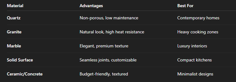 Here's a brief, comprehensive explanation of popular kitchen countertop materials: