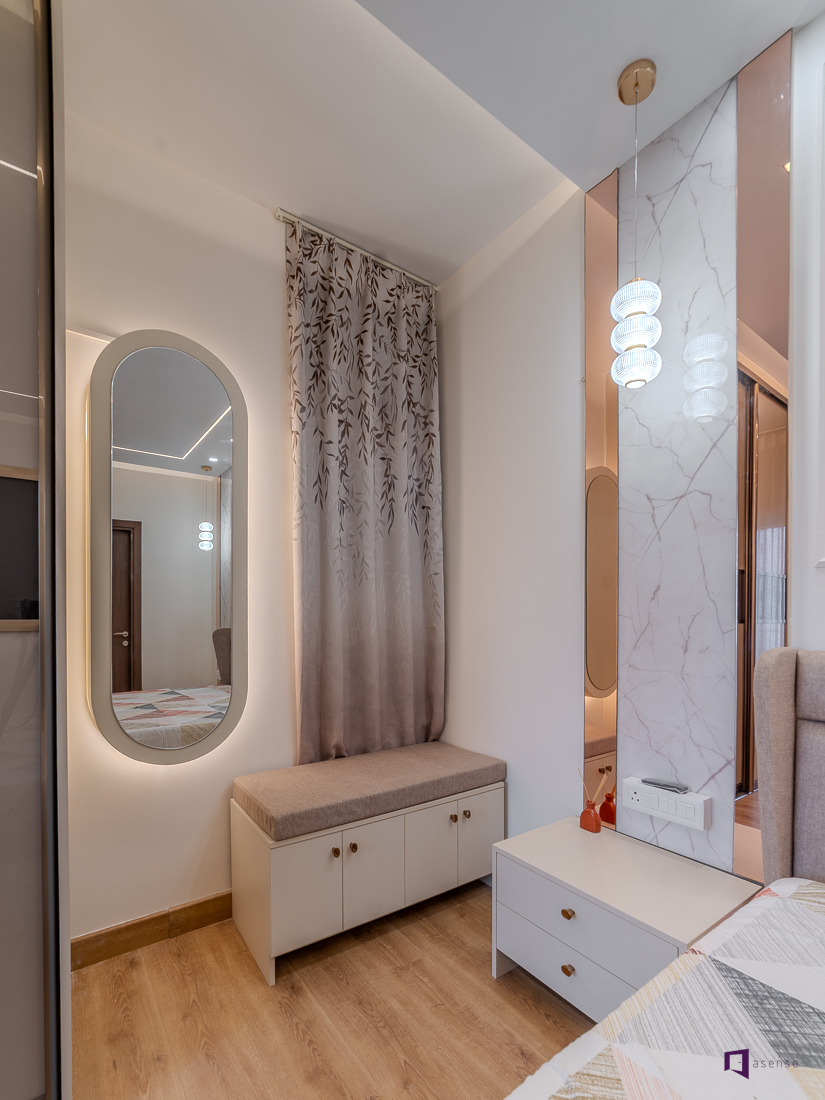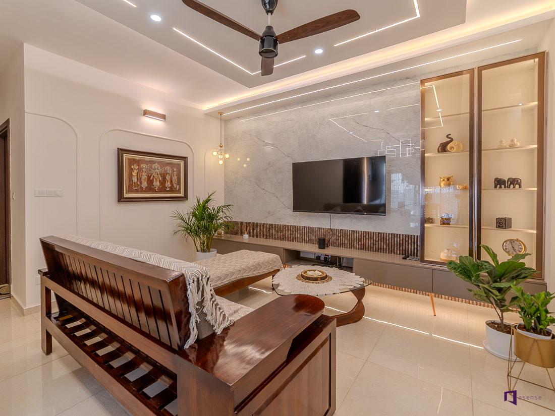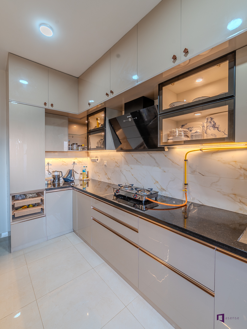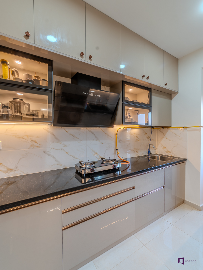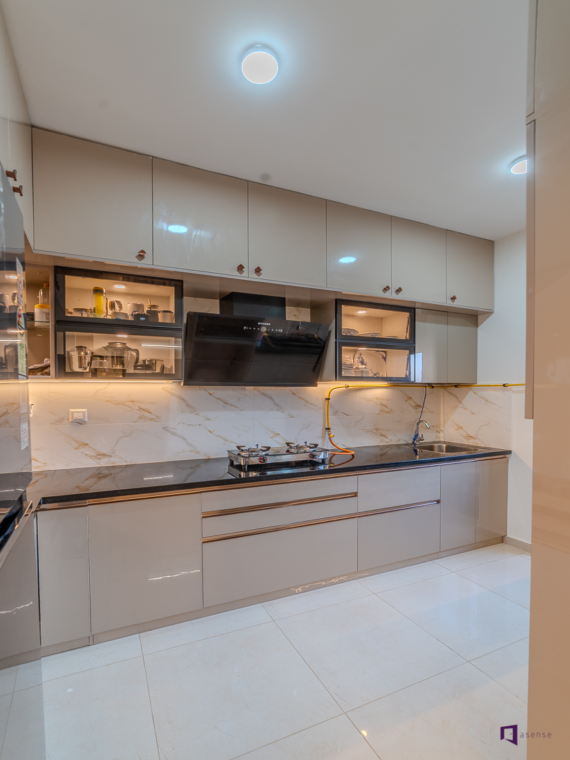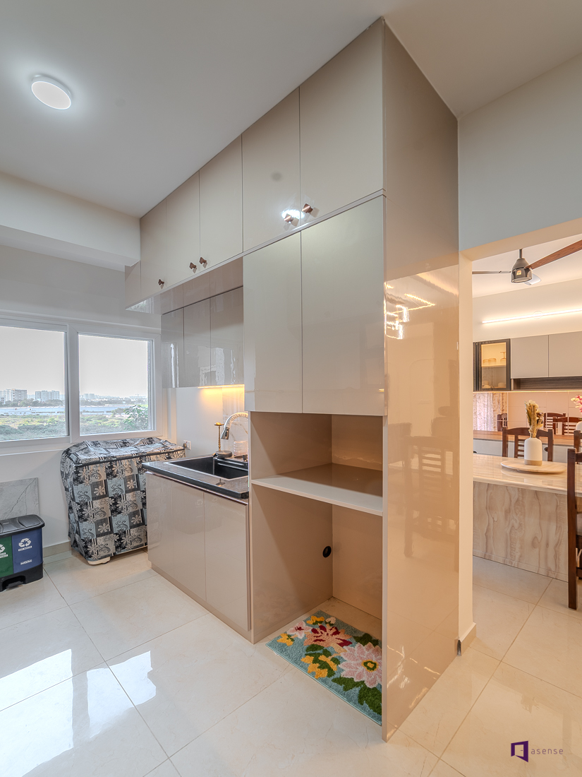 Step inside this stunning 3BHK home interior at Assetz 63 Degree East. The interior has been thoughtfully created to reflect contemporary living, luxury, and timeless beauty. The interior of this apartment showcases elegant design that lets elegant aesthetics effortlessly blend with everyday practicality. The overall layout is designed to increase the natural light, openness and visual harmony across rooms creating a home that feels as spacious and inviting. The living space is designed in a tranquil modern palette that creates a an inviting and warm space without feeling overwhelming. Each bedroom has a distinct style while retaining the individuality of each, providing peace and security for life. The clever storage options, the right materials, and elegant design details make for a sleek but practical interior. The modular kitchen is focused on efficiency, convenience of mobility, and a clutter-free environment that is suitable for urban living. Each and every detail shows the best interior designers in Bangalore providing designs that combine style and long-term functionality. Set in a prestigious residential area, this development showcases the rising need for well planned home interiors designers in Bangalore. This interior design is an inspiration source for homeowners who are looking for a contemporary elegant, carefully planned 3BHK home style.